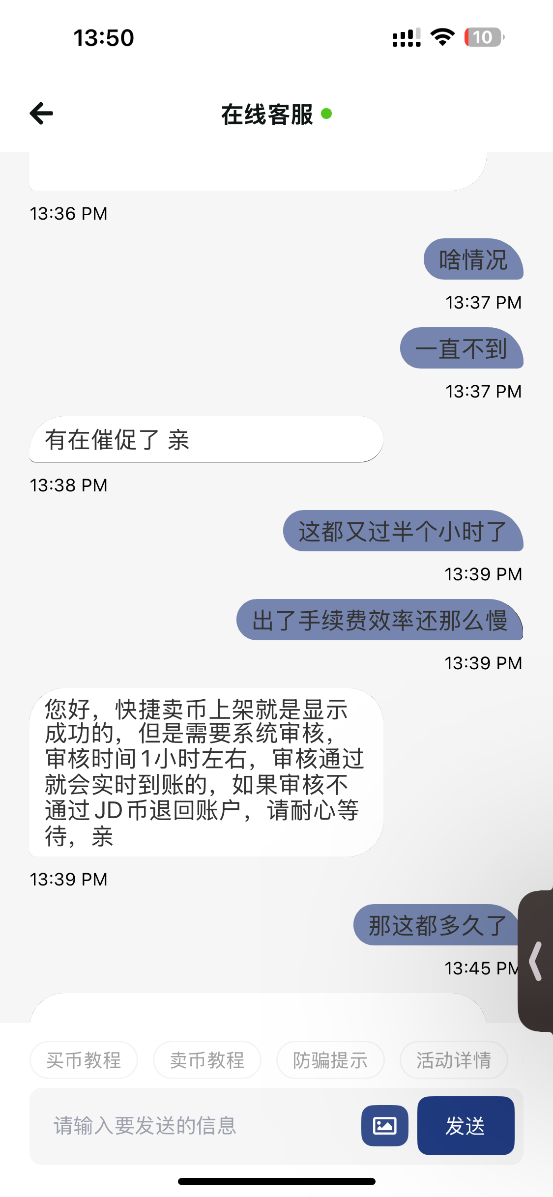 这fw的jd钱包 挂着没人买 花手续费快捷卖币两个小时都还没到 客服也不处理的